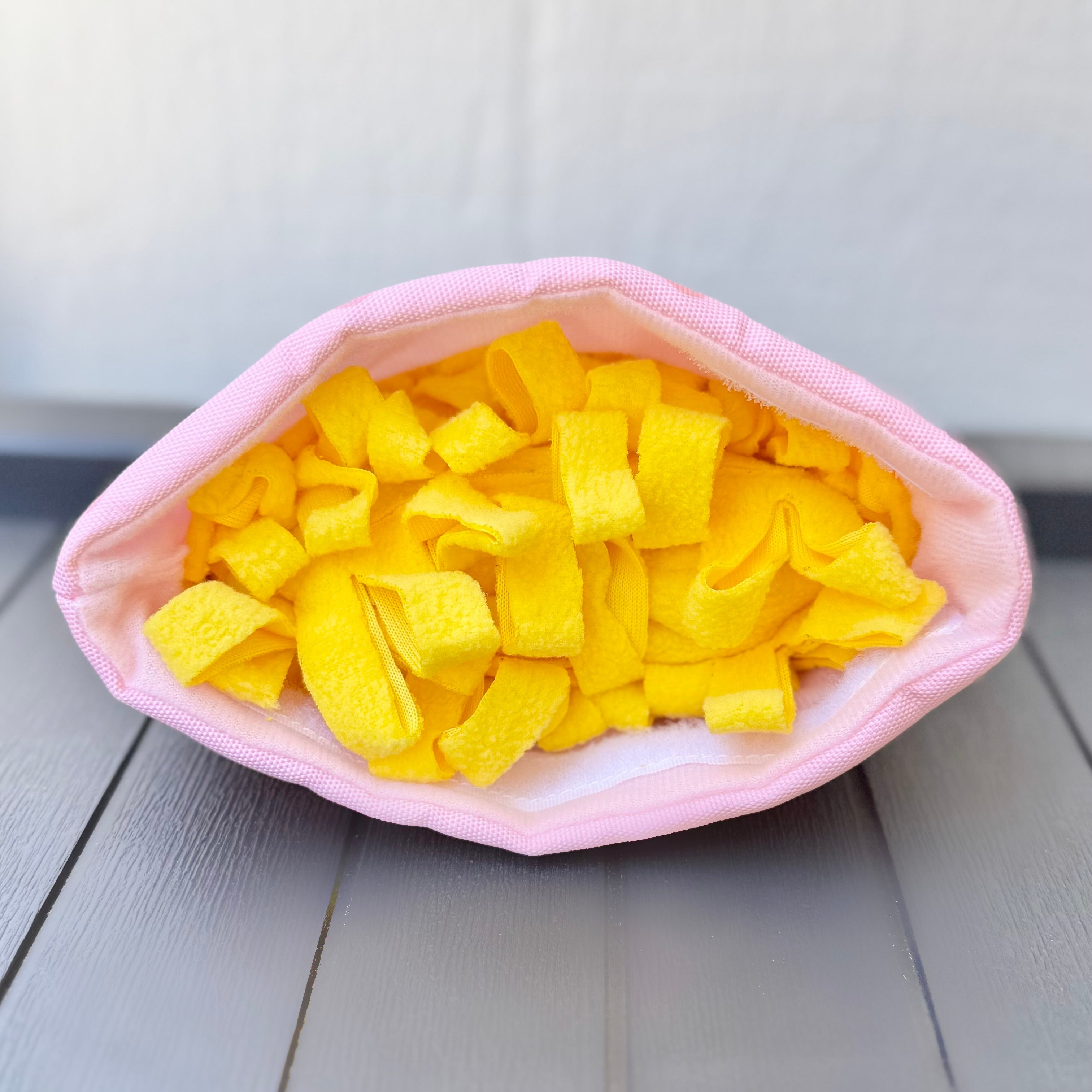 • Mini snuffle mat – Bright yellow “noodles” with a hidden squeaker for nose work fun! Hide treats among the folds and let your furry friend forage like a foodie.