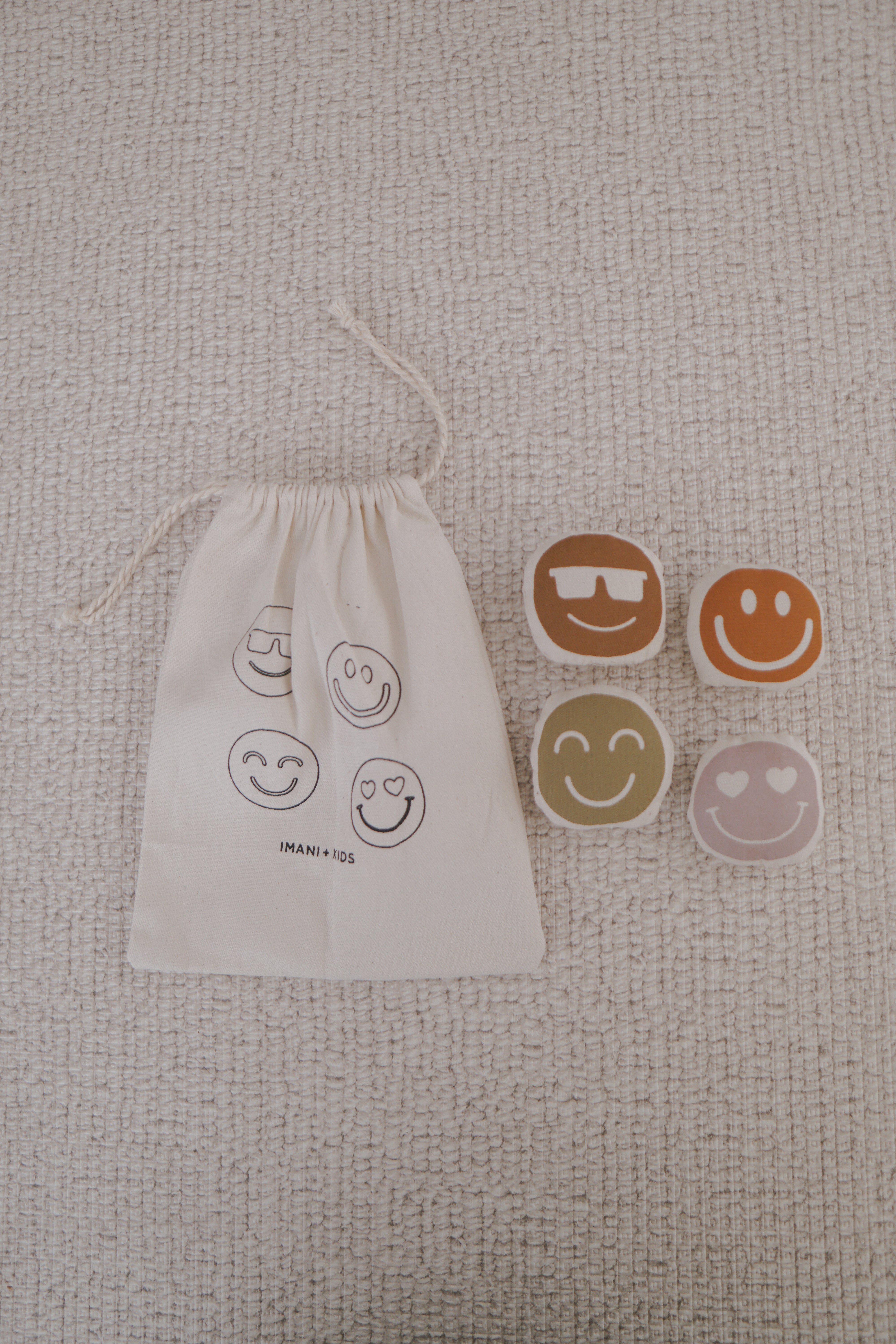 Includes 4 mini smiley emoji pillows, each featuring a unique expression.